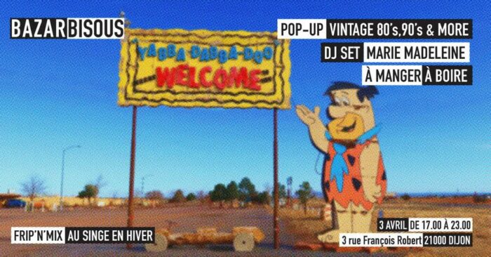 Au programme : pop-up de sape vintage 80’s, 90’s sélectionnée avec goût de l’autre côté de l’Atlantique par Bazar Bisous et DJ set par Marie Madeleine (ben oui, il faut bien que tu sâches si ta toute nouvelle garde robe te permet de déchirer le dancefloor)