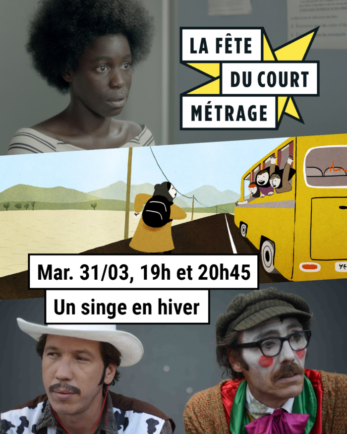 Venez découvrir ce programme best-of entre rires et larmes, composé de cinq courts-métrages de fiction et d’animation, le mardi 31 mars prochain, au Singe en hiver ! Et pour permettre au plus grand nombre d’y assister, deux séances seront proposées : une à 19h et une à 20h45.